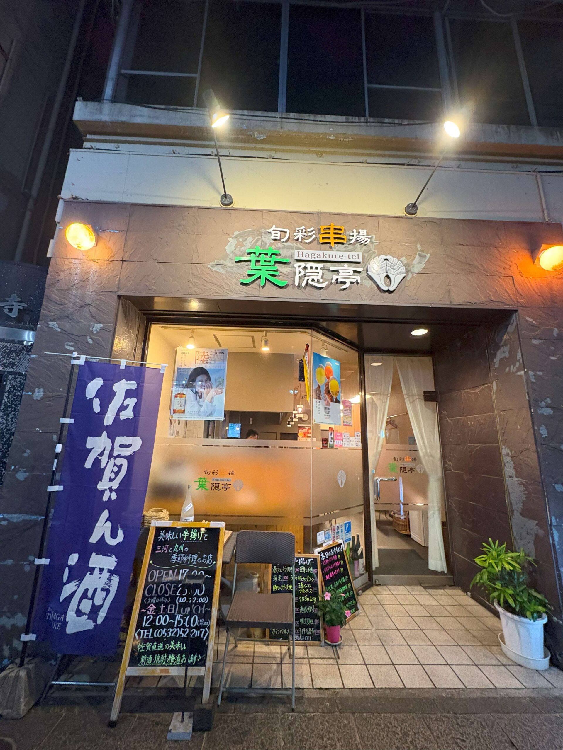 2025.06.29 佐賀県人ゆかりのお店紹介ー豊橋市・葉隠亭ー 今回は佐賀県人ゆかりのお店を紹介したいと思います。 令和7年中京佐賀県人会総会も無事終わり、おつかれさま会(といっても二人)ということで、 豊橋市の『葉隠亭』さんへ行ってきました。 豊橋駅から徒歩8分ほぼ真っ直ぐで迷うことなく行けました。 「佐賀ん酒」ののぼりがお出迎えしてくれます。 佐賀から仕入れた食材を使った料理や佐賀のお酒がたくさんあり どれも美味しかったです! こんなに佐賀を堪能できるお店は、愛知県では貴重です!! ふるさとの味が恋しくなったらぜひ行ってみてください。 佐賀市出身の大将が温かく迎えてくださいますよ。 <葉隠亭> 愛知県豊橋市広小路2丁目25-1 0532-52-2117 https://hagakuretei.owst.jp/ お店外観 サガサケマンもお出迎え 揚げたての串揚げが最高! お通しの「およごし」(白和え) 佐賀の方直伝の「自家製ごどうふ」 みつせ鶏塩焼き さがびよりのおにぎり 佐賀らーめん <大島> Tweet Share Hatena Pocket RSS feedly Pin it この記事のタイトルとURLをコピーする 【開催レポート②】2025年度中京佐賀県人会 総会・懇親会 2025/06/15(日) 前の記事 合同懇親会ー開催報告ー 次の記事